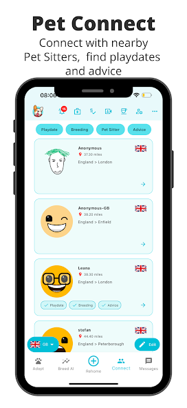 リアルタイムのコミュニケーション:安全なメッセージングシステムを通じて、ペットの飼い主、養子縁組者、ブリーダーと即座にチャットします。